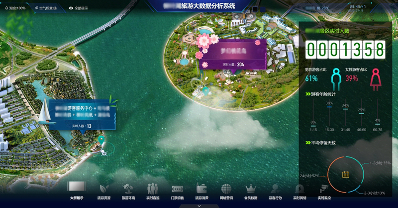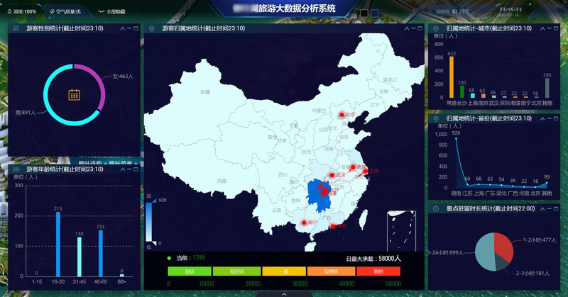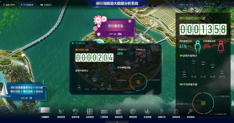 景區(qū)旅游大數(shù)據(jù)分析展示系統(tǒng)借助云計算、GIS、移動通信、人工智能等多個領域的技術,融合了視頻處理、圖像處理、模式識別、運動軌跡判別等統(tǒng)計分析算法,通過對接景區(qū)門禁票務數(shù)據(jù)、視頻監(jiān)控數(shù)據(jù)、電子商務數(shù)據(jù),分析景區(qū)客流量信息、車輛識別數(shù)據(jù)、WIFI探針數(shù)據(jù)、客源地信息、熱力圖信息,對游客的年齡層次、來源省份和地市構成比例、在景區(qū)的停留時間、各景點客流量等信息進行周期性統(tǒng)計和挖掘,并與歷史數(shù)據(jù)進行對比分析,為景區(qū)旅游業(yè)的科學管理、游客的旅游體驗和面向客源地的精準營銷提供數(shù)據(jù)支撐。