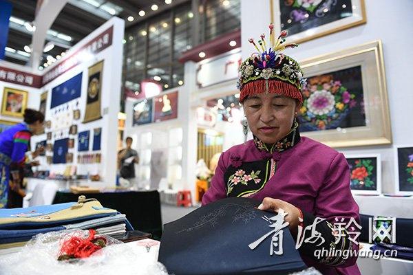 在青海展區(qū),土族盤繡、河湟刺繡、撒拉滿繡……展示了傳統(tǒng)刺繡融入現(xiàn)代生活的新亮點。而身著民族服飾的繡娘穿針舞線的優(yōu)美側(cè)影成為展區(qū)內(nèi)一道獨特的風(fēng)景線。