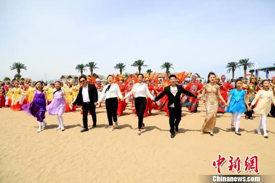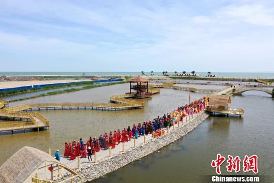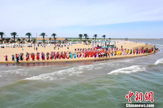 在博斯騰湖大河口景區(qū)西海沙浪景點(diǎn),來(lái)自該縣的500余位能歌善舞的非遺傳承人和民間藝人們,穿著蒙古族盛裝,在舞臺(tái)上盡情表演。