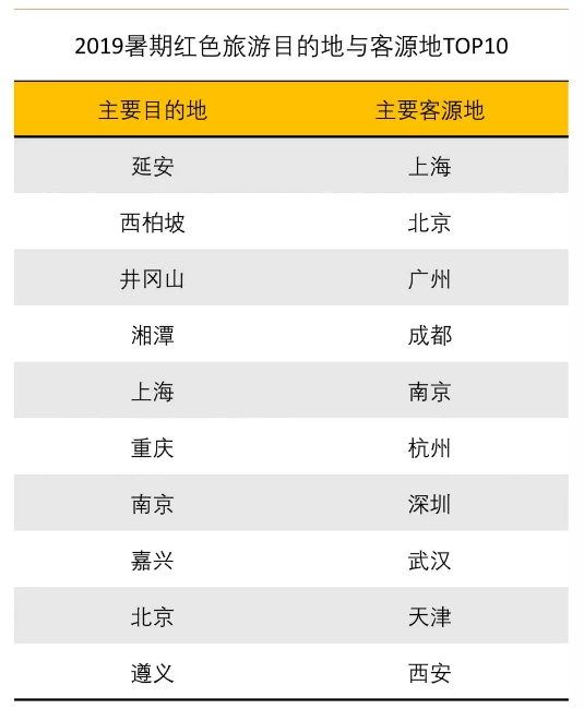 大型OTA的數(shù)據(jù)顯示,僅2019年暑假,預(yù)計(jì)即有超過(guò)1億人次選擇紅色旅游。主要目的地為延安、西柏坡、井岡山、湘潭、上海、重慶、南京、北京等地。主要客源地則為上海、北京、廣州、成都、南京、杭州、深圳、武漢、天津、西安等地。
