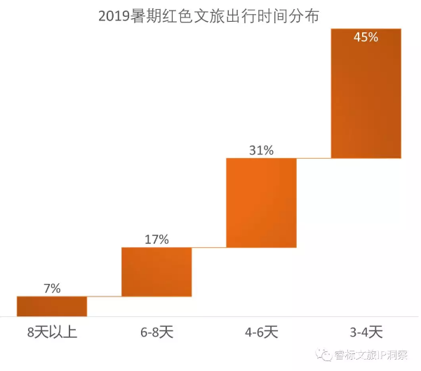 出游時(shí)長(zhǎng)方面,多數(shù)旅客出游時(shí)長(zhǎng)在4-6天,出游人次占比為45%;其次為3至4天中短途游,占比為31%;17%的旅客出游時(shí)長(zhǎng)在6-8天,僅有7%的旅客出游時(shí)長(zhǎng)超過(guò)8天。