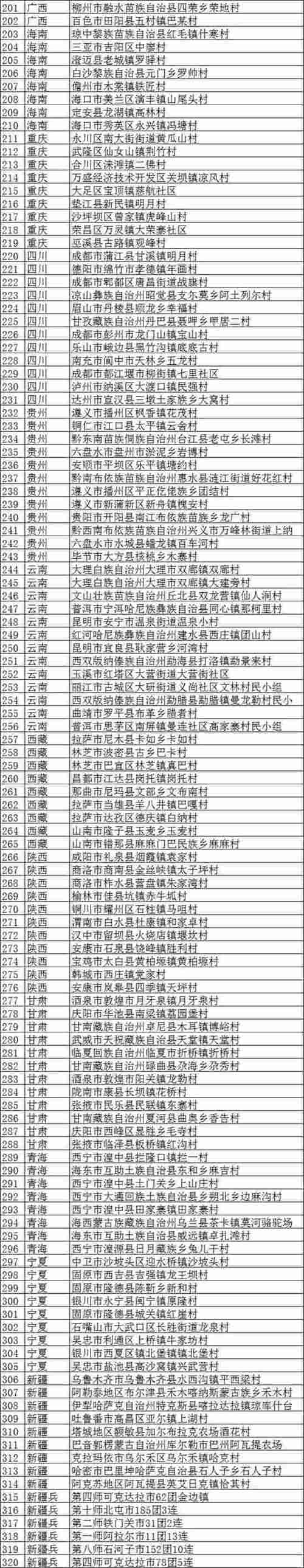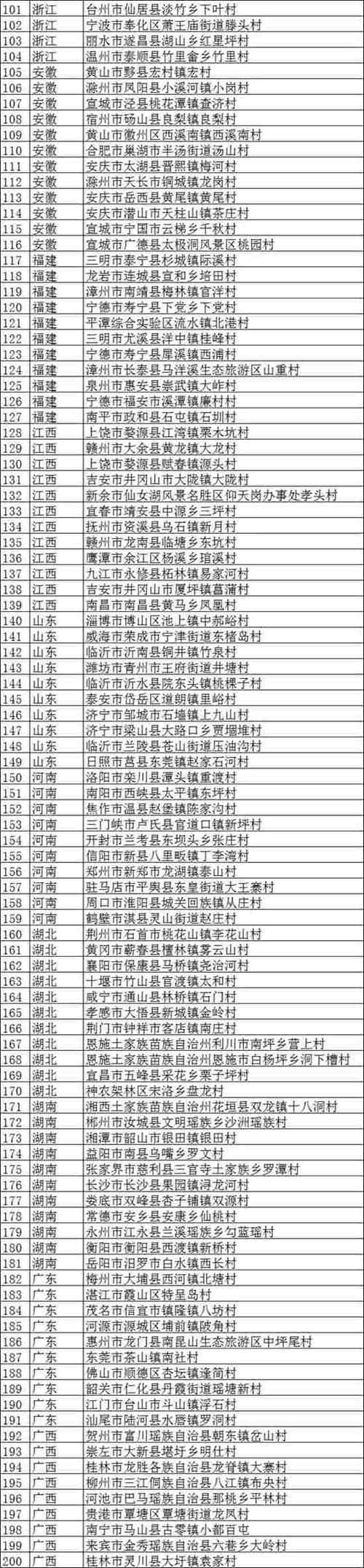 第一批全國鄉(xiāng)村旅游重點村名單: