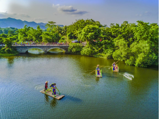 因此,當華僑城遇見三亞這片熱土,關于創(chuàng)想的畫卷,便從三亞中廖村的黎鄉(xiāng)椰韻出發(fā),逐漸在三亞馬嶺村的海洋風情,三亞文門村稻田哲學,三亞南山村的禪修生活,??谔敦S洋的萬畝濕地;在云南烏龍古漁村的遺址保護、宜良九鄉(xiāng)的喀斯特地質奇觀、騰越傳統(tǒng)古村落核桃園、景宏小普希的基諾民族文化村等鋪展開來,如一道星光劃過夜空,點亮了美麗鄉(xiāng)村的華僑城版圖。