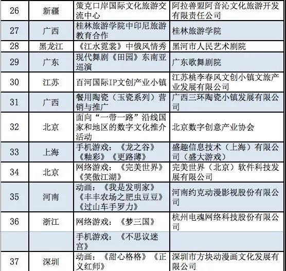 附件:文化和旅游部2019年度“一帶一路”文化產(chǎn)業(yè)和旅游產(chǎn)業(yè)國際合作重點(diǎn)項(xiàng)目公示名單
