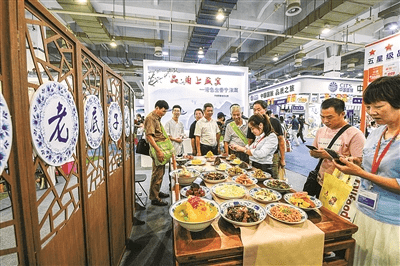 2019寧波國際旅游展上,寧波主題館的飲食文化專區(qū)吸引不少市民駐足拍照。(李冰 攝)