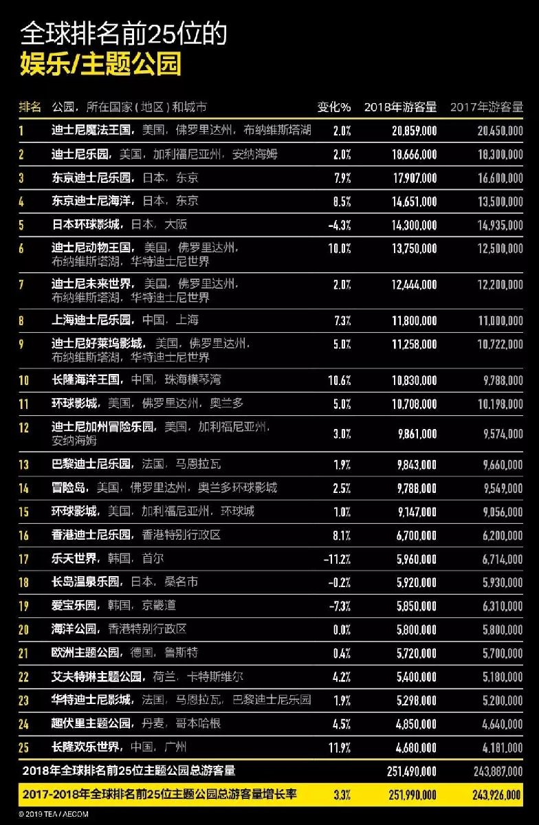報告根據(jù)客流量列出了全球前25名樂園。榜單前四名毫無意外地被迪士尼占據(jù),但上面也出現(xiàn)了來自中國的兩家本土文旅企業(yè)。