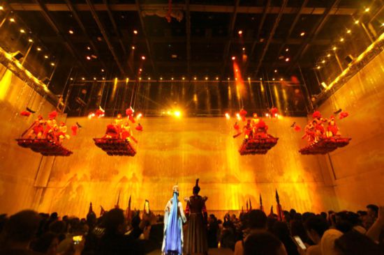 《沙坡頭盛典》以中衛(wèi)沙坡頭“桂王城”“沙坡鳴鐘”“沙掩王城”“淚泉”等古老傳說為故事原型,首創(chuàng)沉浸式情境體驗,通過運用全息影像、AR技術應用、玻璃晶球、巨型升降平臺等9D舞美前沿科技,實現(xiàn)了從空間、科技、文化乃至藝術表現(xiàn)形式等方面的“七大”創(chuàng)新突破,推動寧夏文化與旅游、科技的深度融合,助推中衛(wèi)乃至寧夏文化旅游和云產(chǎn)業(yè)的全面發(fā)展,推動全域旅游快速發(fā)展。