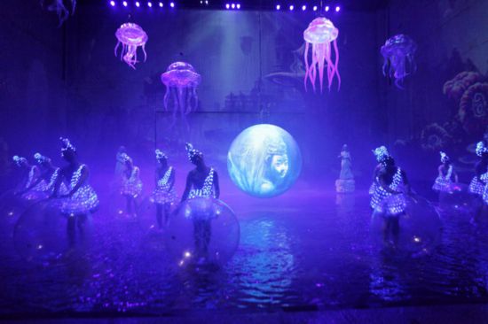 為了最大限度地豐富劇場空間層次,滿足劇情對布景和場地的要求,更好地突顯演出效果,《沙坡頭盛典》斥巨資建造了國內(nèi)最大的整體升降舞臺,總面積400平方米,載重400噸,升程6.9米,可容納500人同時升降,無論是面積、載重、可容納人數(shù)均為國內(nèi)第一。通過整體升降舞臺不同的高度變化,盛典劇目可以輕松實現(xiàn)舞臺場景轉換、上下移動演員和觀眾,制造出高低起伏、層次錯落的舞臺畫面,從而改變觀眾觀演視角,增強觀眾體驗度,讓觀眾身浸其中,體驗驚險、刺激、震撼、唯美的獨特感受。