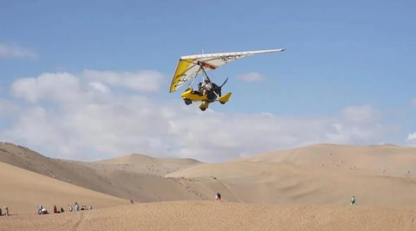 在敦煌鳴沙山月牙泉景區(qū)入口處,等待體驗(yàn)低空飛行的游客排起長(zhǎng)隊(duì)。貴州游客張女士剛結(jié)束八分鐘的飛行體驗(yàn),興奮地向同伴展示手機(jī)拍攝的空中全景:“在下面根本看不到月牙泉全貌,飛到上面才看清它像一彎真正的月亮鑲嵌在沙漠里!”